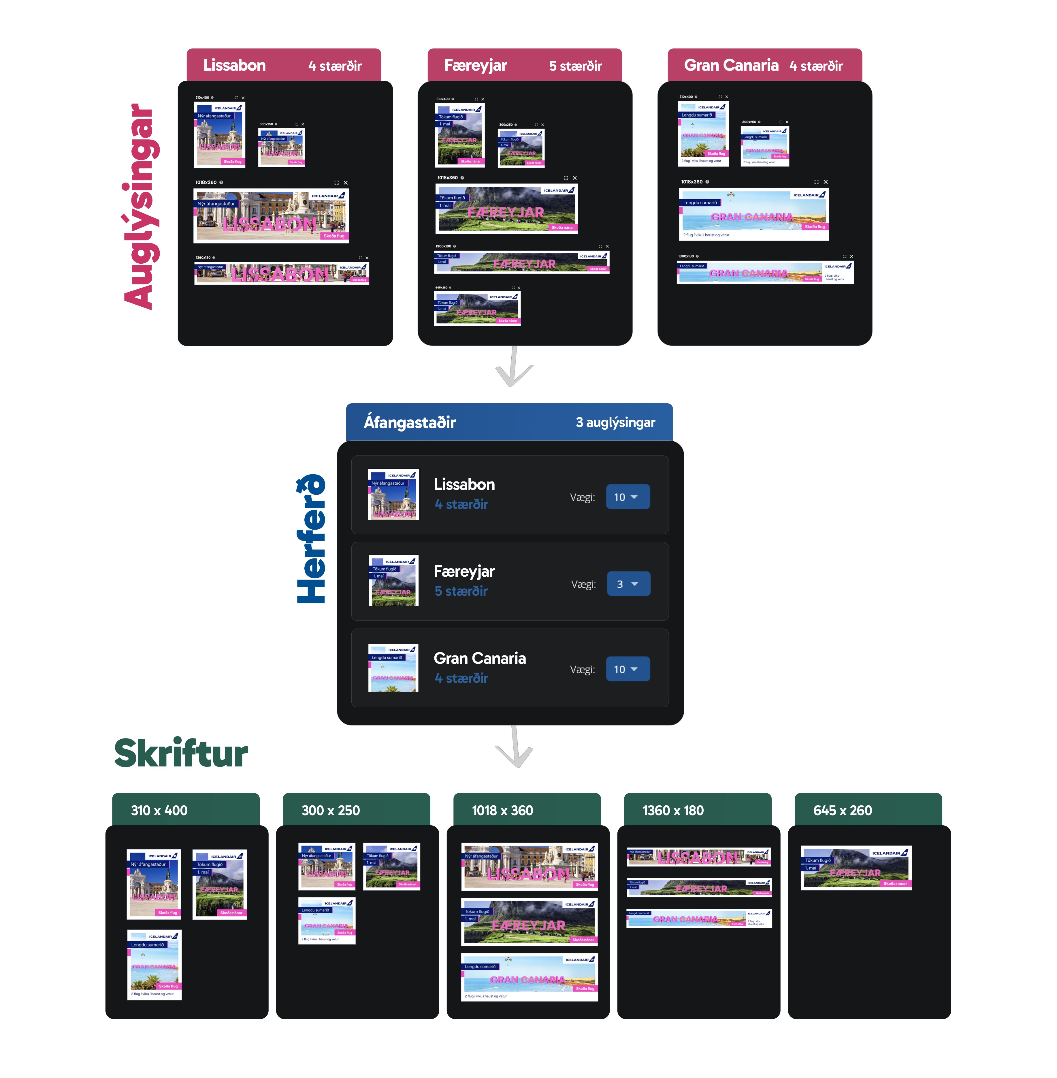 See an example of the ad flow for destinations with Icelandair. In most cases, the destinations are MUCH more numerous, resulting in significant efficiency and time savings.