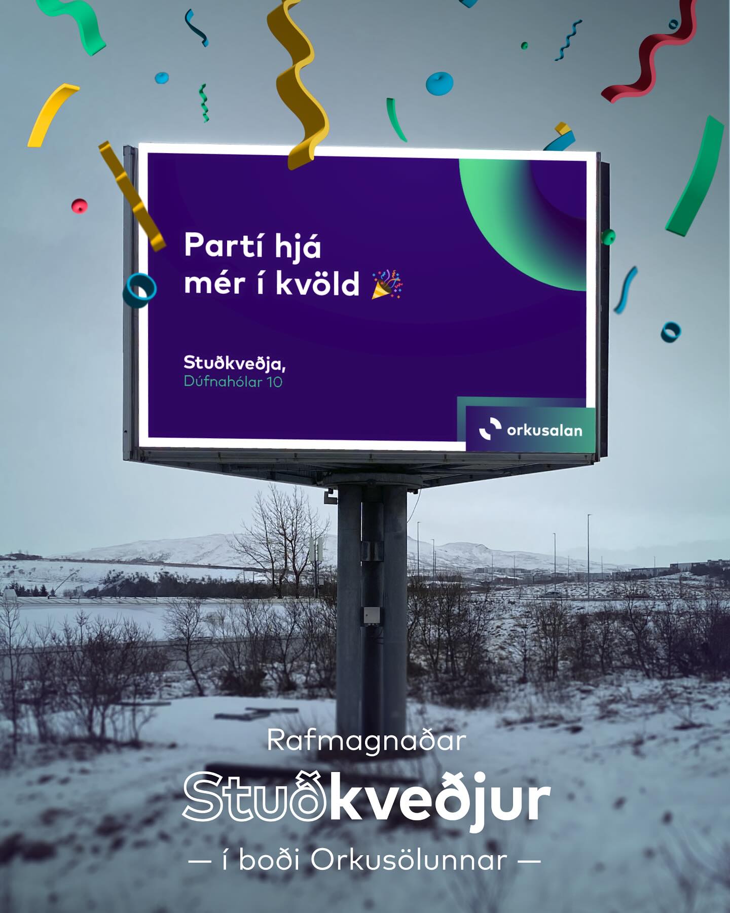 In collaboration with Birtingahúsið, we proudly present the interactive campaign for Orkusalan – "Stuðkveðjur". This exciting and electrifying advertising campaign empowered users to control messages on outdoor billboards across Iceland. By visiting Orkusalan's website, users could send personal greetings or general messages that appeared on large billboards in their own city or neighborhood.